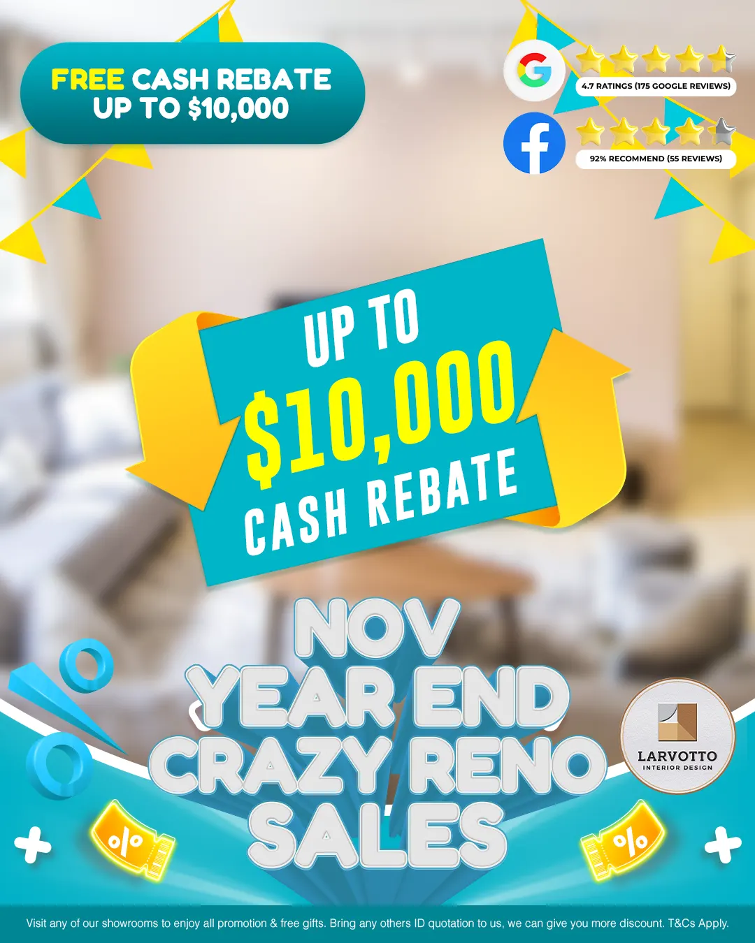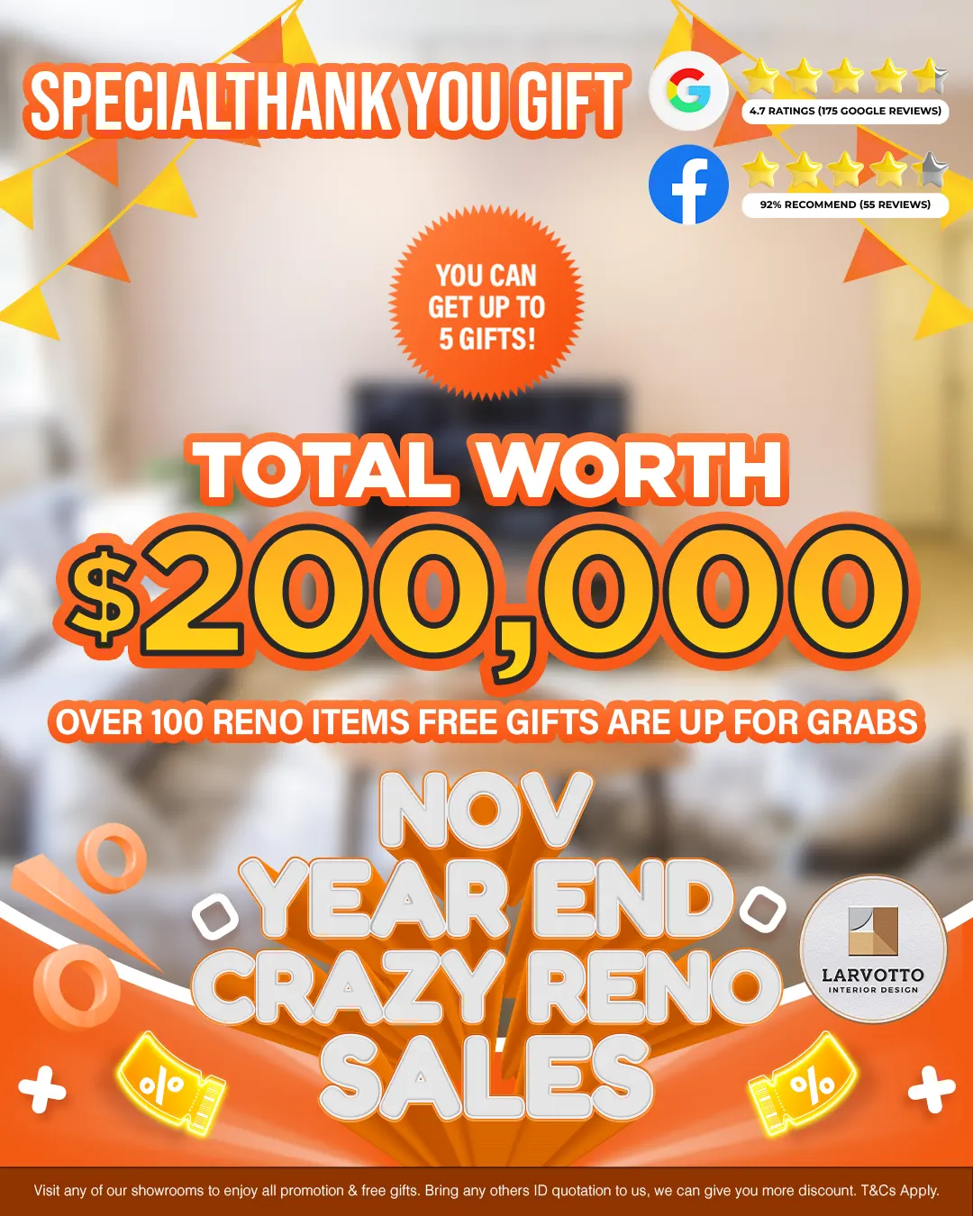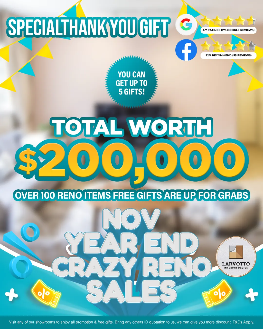 Sign up for any package above $15,888 to enter our Lucky Draw & walk away with real reno gifts!